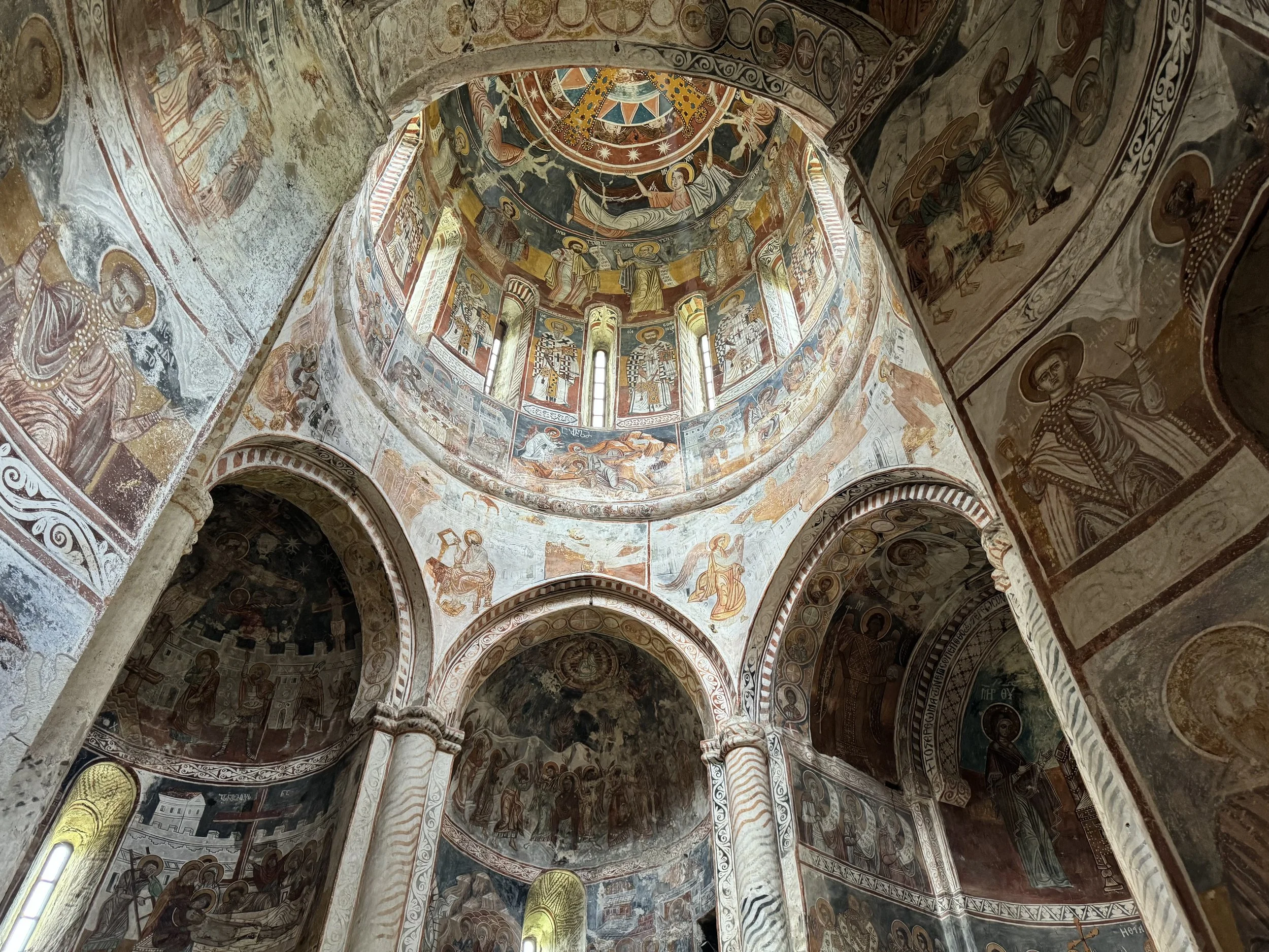 We drove into the Racha region. Near Ambrolauri we stopped at Nikortsminda Cathedral, described by UNESCO as “one of the most outstanding examples of Georgian architecture’’. Despite being over a thousand years old, it’s original appearance has hardly changed. But it’s not just the structure that’s impressive. The inside is covered with beautiful frescoes. The cathedral is in a quiet rural area, and I was the only visitor at the time.